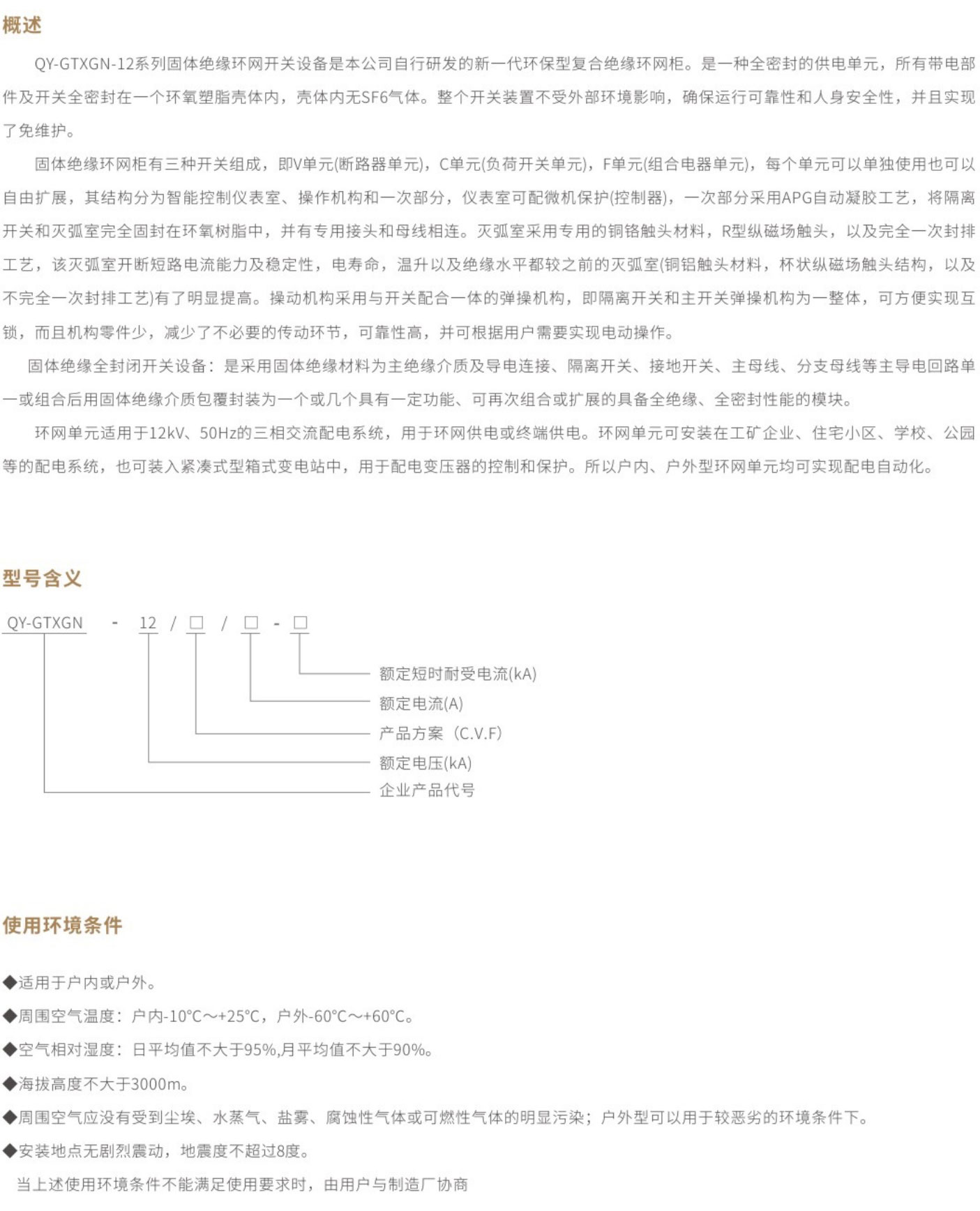 QY-GTXGN-12系列固体绝缘环网开关设备