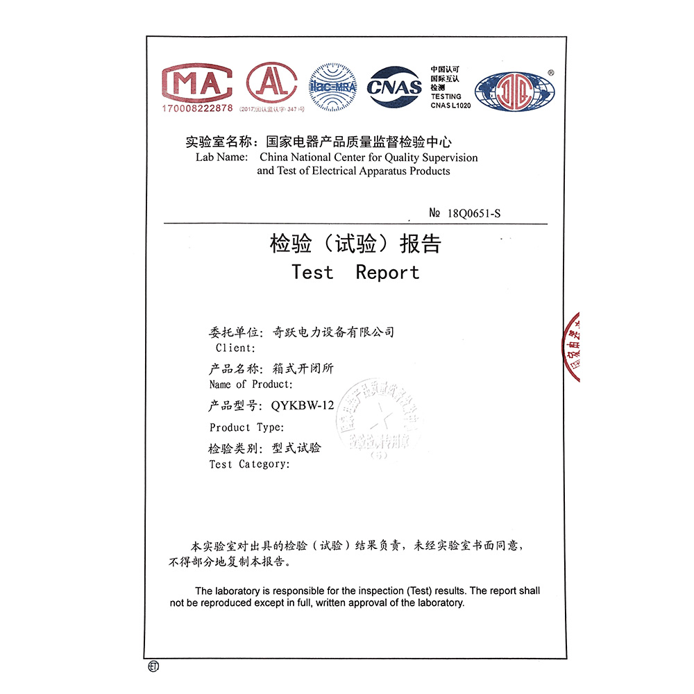 (QY)DFW-12/T630-20户外电缆分支箱 检验报告