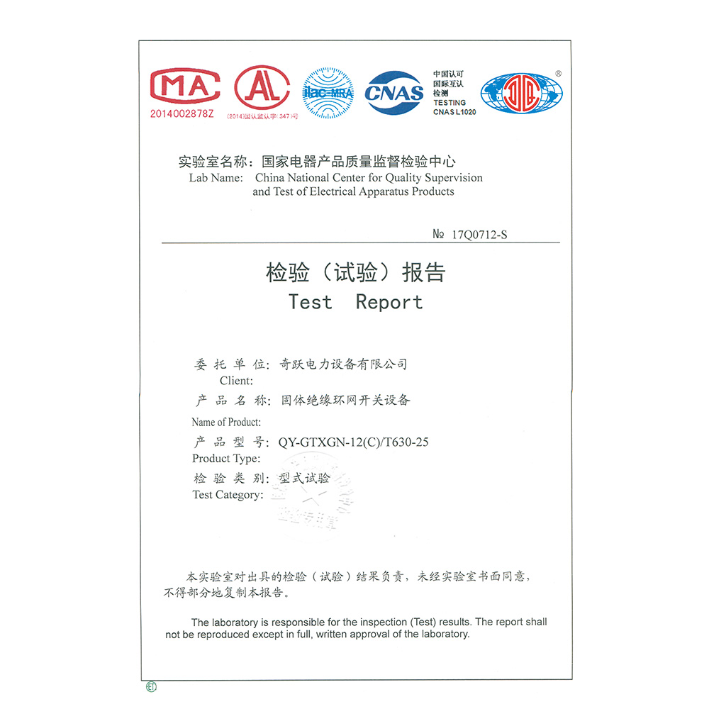 QY-GTXGN-12(C)/T630-25固体绝缘环网开关设备 检验报告