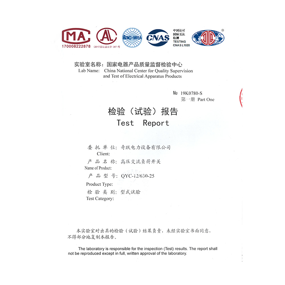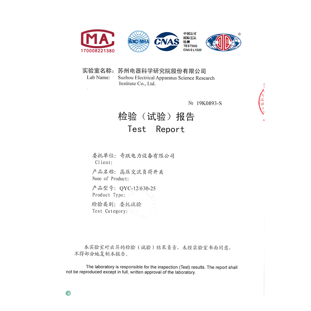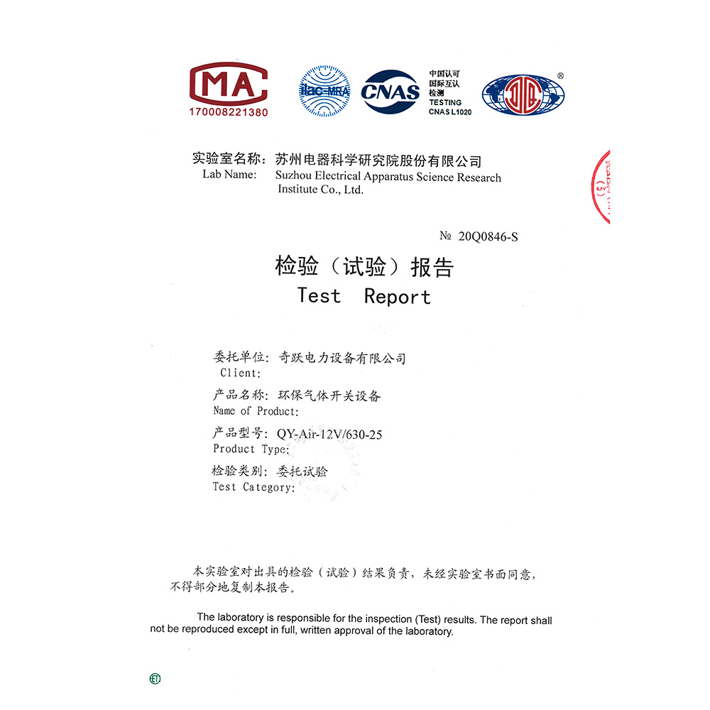 QY-Air-12V/630-25环保气体开关设备 检验报告