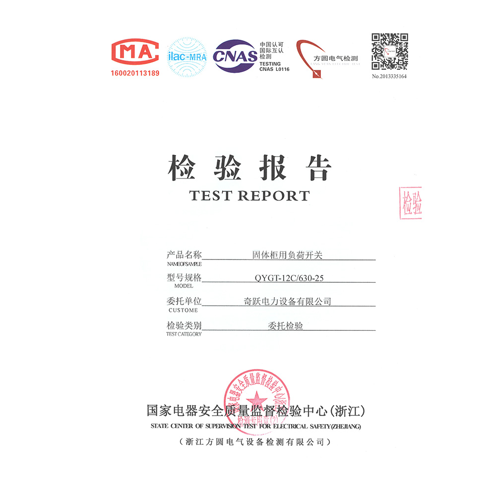 QYGT-12C/630-25固体柜用负荷开关 检验报告