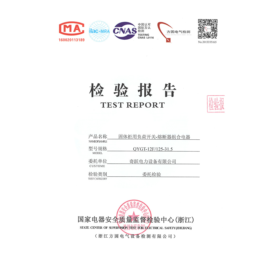 QYGT-12F/125-31.5固体柜用负荷开关-熔断器组合电器 检验报告