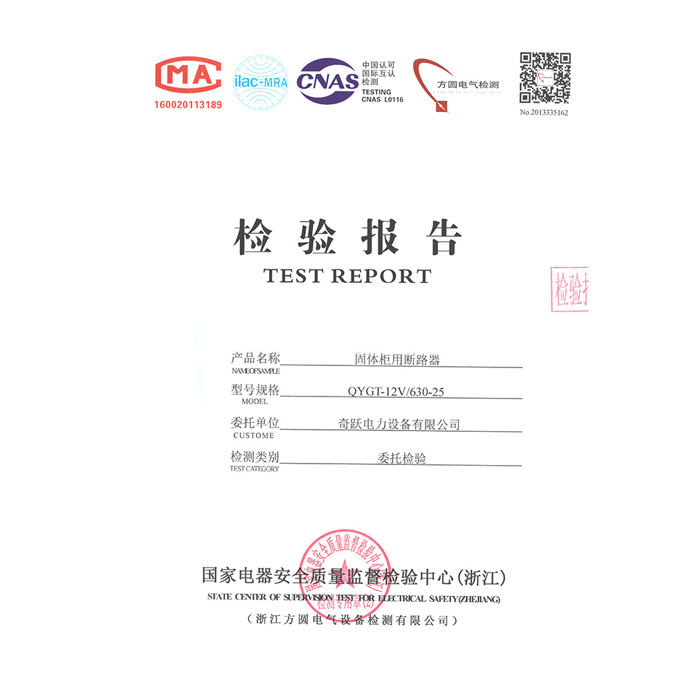 QYGT-12V/630-25固体柜用断路器 检验报告