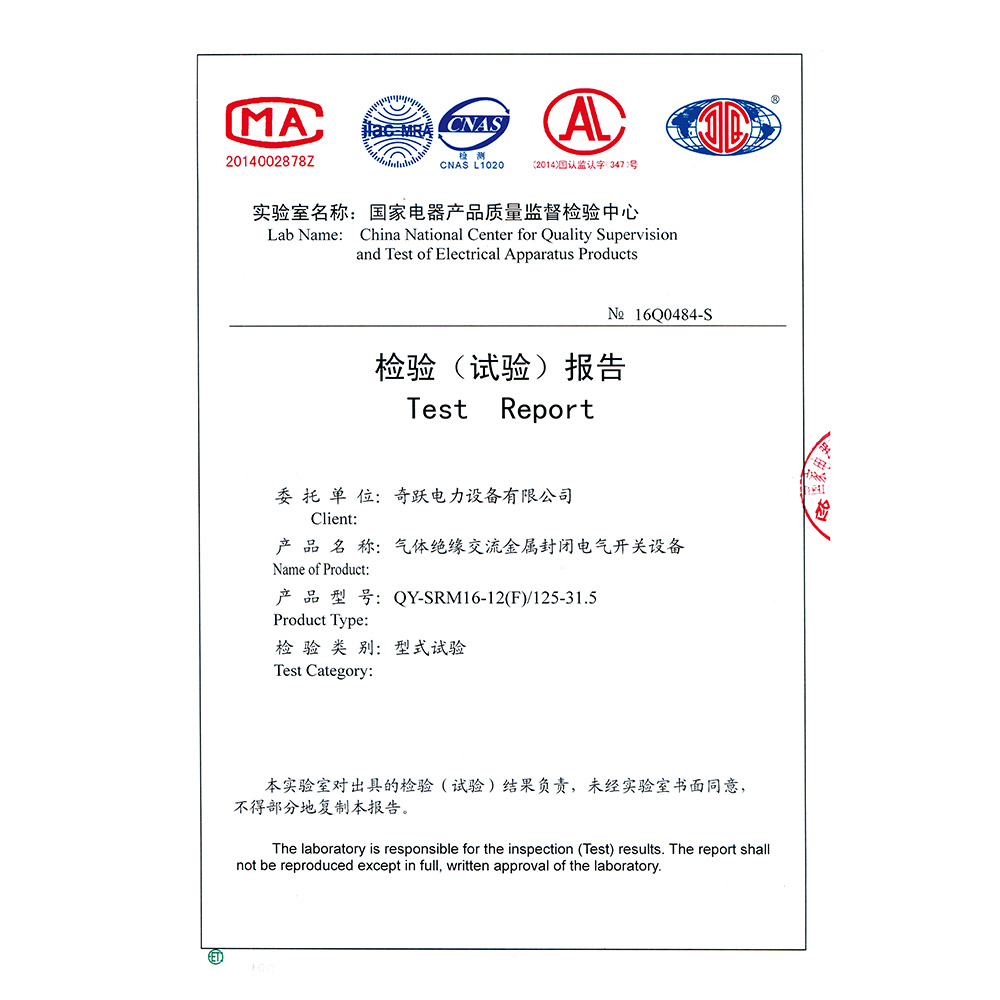 QY-SRM16-12(F)/125-31.5气体绝缘交流金属封闭电气开关设备 检验报告