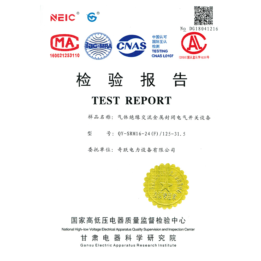 QY-SRM16-24(F)/125-31.5气体绝缘交流金属封闭电气开关设备 检验报告
