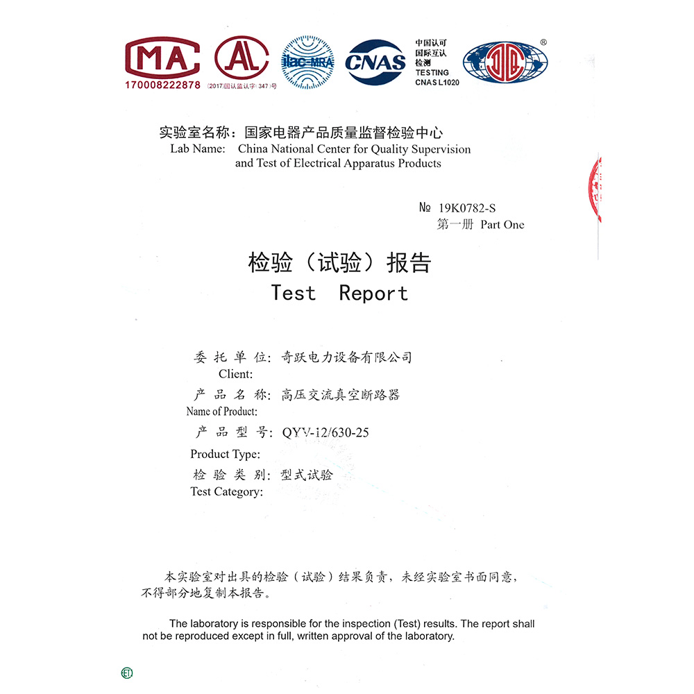 QY-SRM16-24(C)/630-25气体绝缘交流金属封闭电气开关设备 检验报告