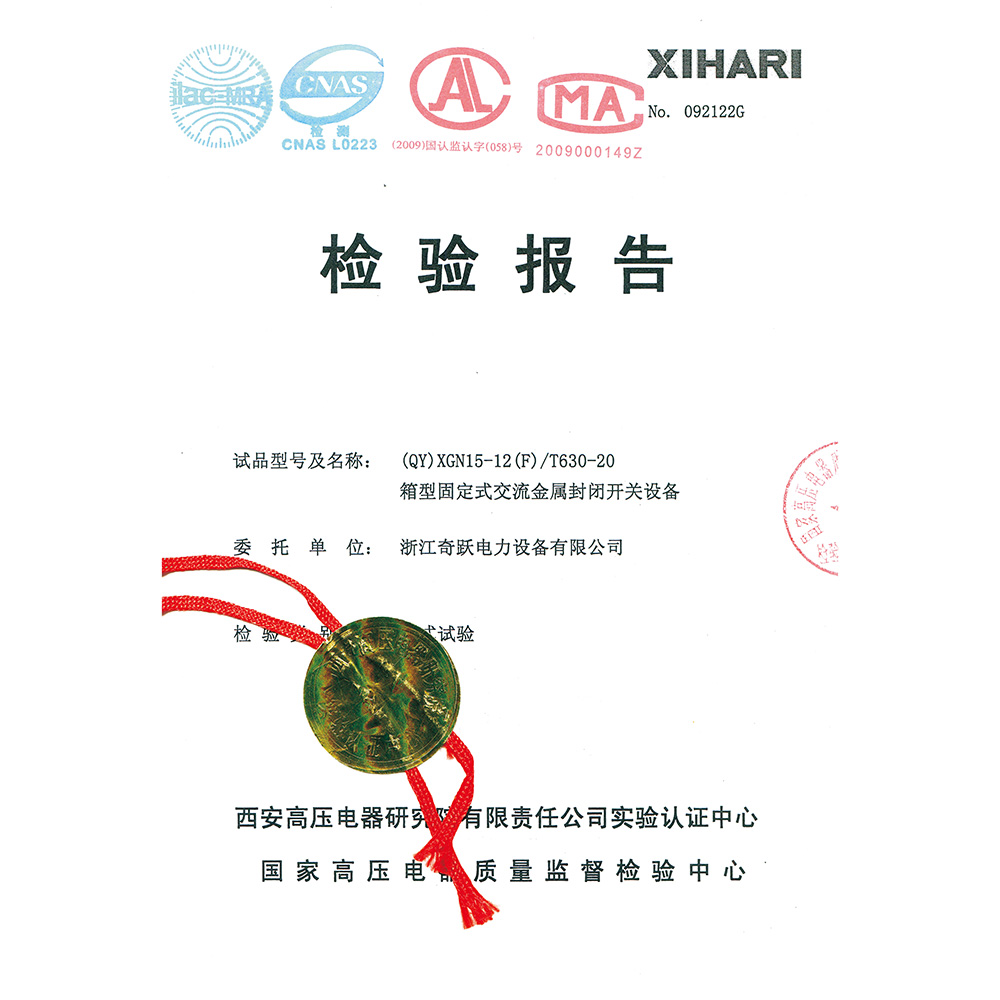 (QY)XGN15-12(F)/T630-20箱型固定式交流金属封闭开关设备 检验报告