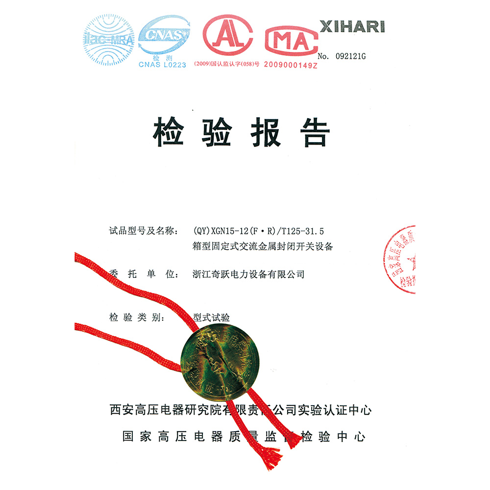 (QY)XGN15-12(F·R)/T125-31.5箱型固定式交流金属封闭开关设备 检验报告