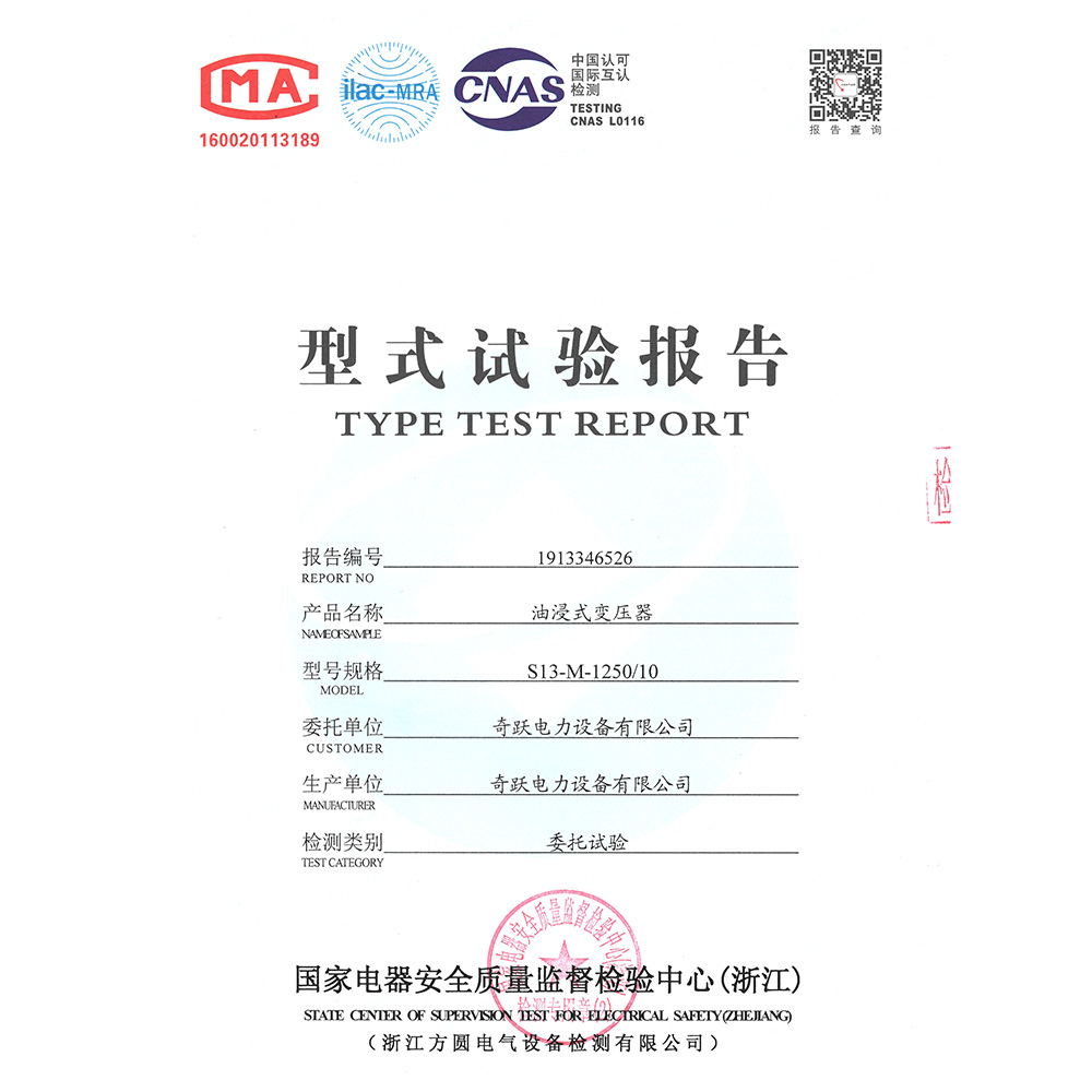 QY-SRM16-12(V)/1250-31.5气体绝缘交易金属封闭电气开关设备 检验报告