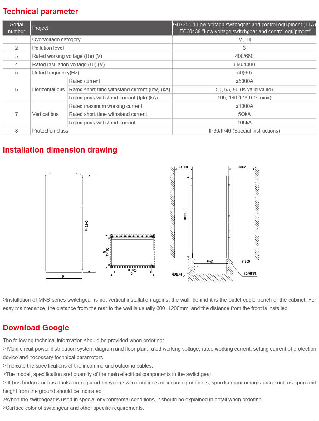 MNS Low-voltage withdrawable switchgear