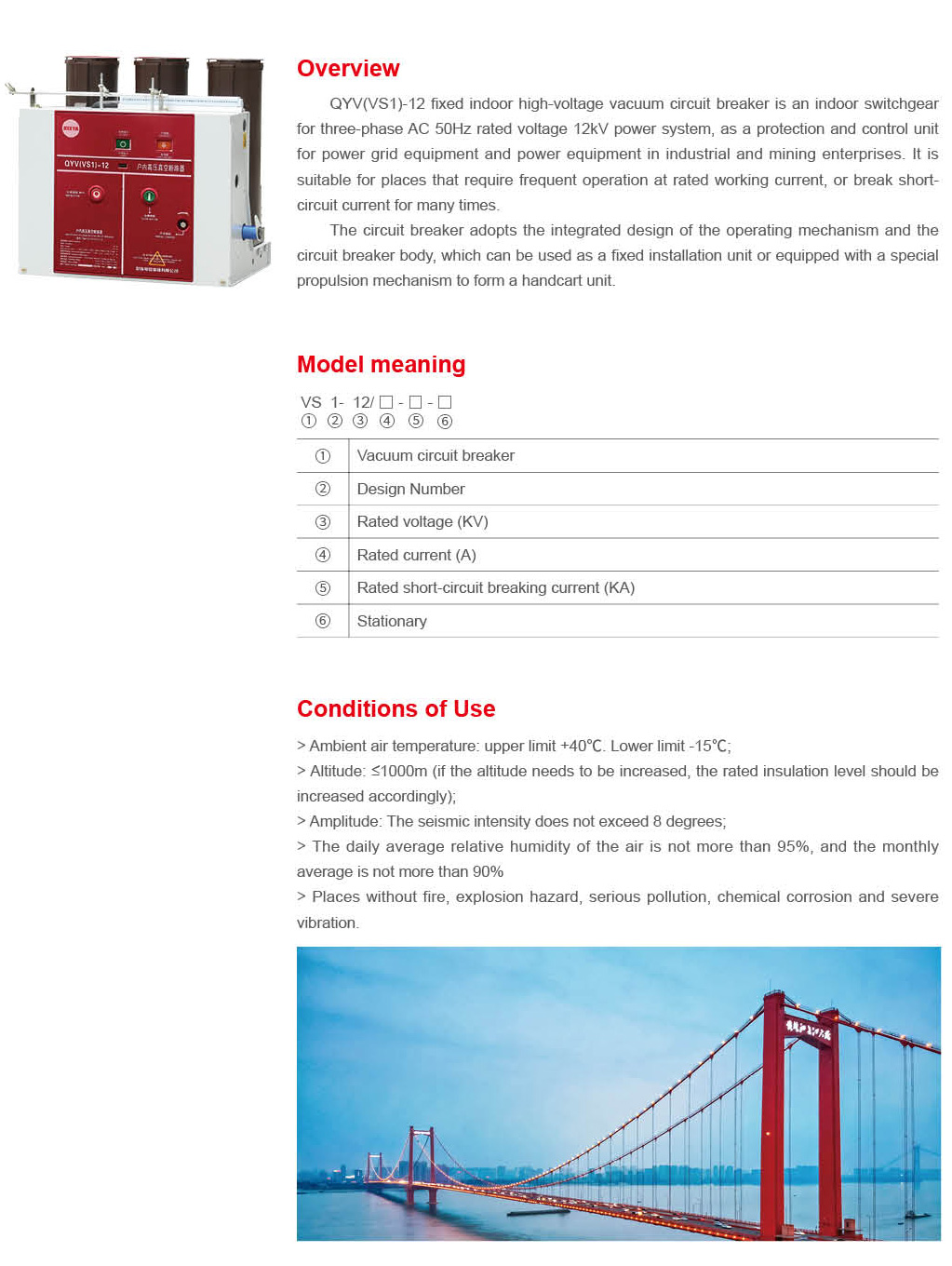 QYV(VS1)-12 Fixed indoor high voltage vacuum circuit breaker